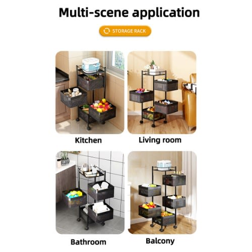 Convenient: rotating basket design, it is more convenient to receive more to receive more convenient, varied use; the distance between the layers is increased on both sides of the fence protection to protect the goods from slipping, more assured.