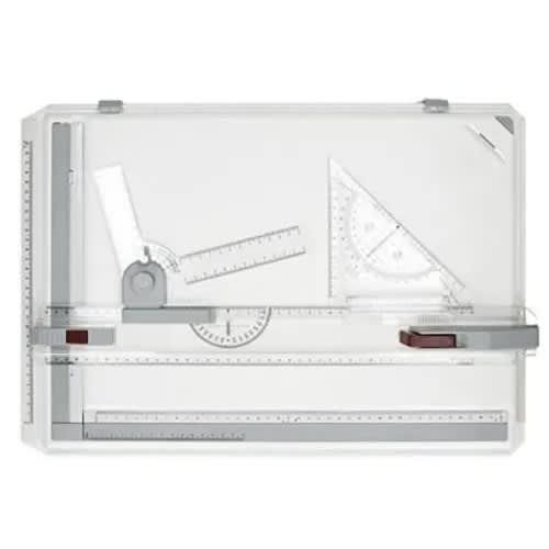 - Size: 73cm (length) x 48cm (width)- Material: Durable, smooth wood or high-quality plastic- Features: - Grid lines or squares for accurate measurements - Straight edge for drawing straight lines - Built-in protractor or angle measurements - May have adjustable clips for securing paper - Ergonomic design for comfort and reduced fatigue