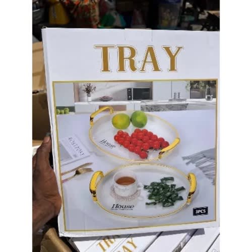 Buy Round Acrylic Serving Trays With Golden Handles Set - 3 Pcs in Nigeria