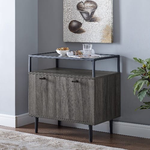 Walker Edison Modern Glass Top 2-door Side Table - Slate Grey