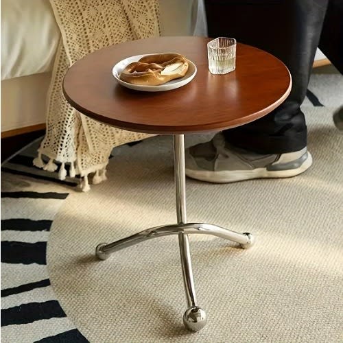 Round Coffee Side Table With Metal Base And Wooden Top - Brown