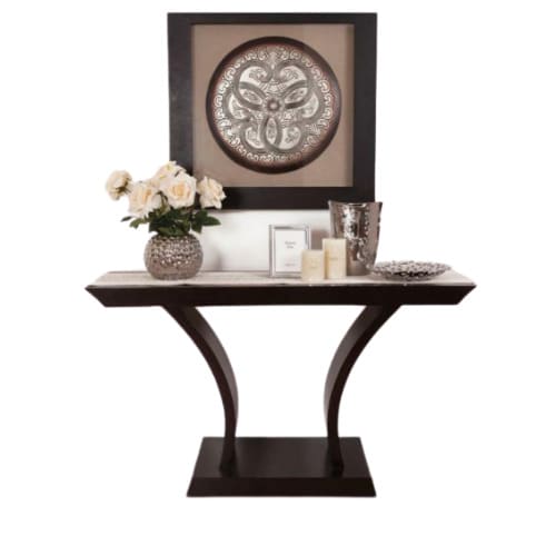 Hand-applied dark brown finish with pewter-tone hardware. Tastefully designed to fix your home space.