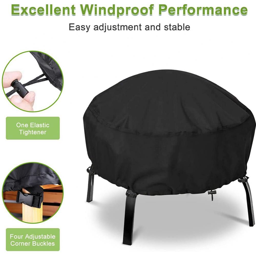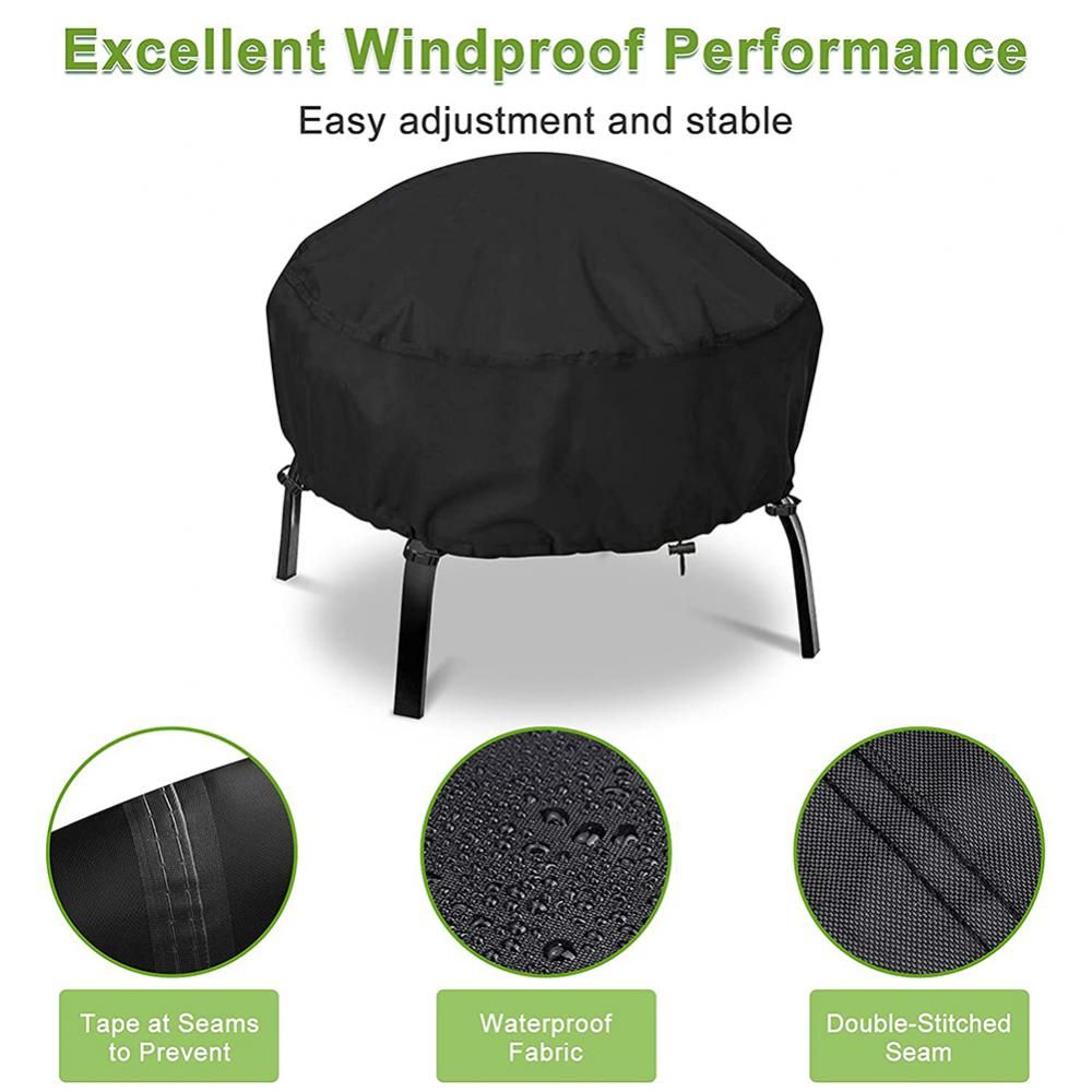 Durability:The outdoor fire pit cover is made of durable oxford cloth with thick PVC coating, which can be used for many years. High quality material UV and tear resistant