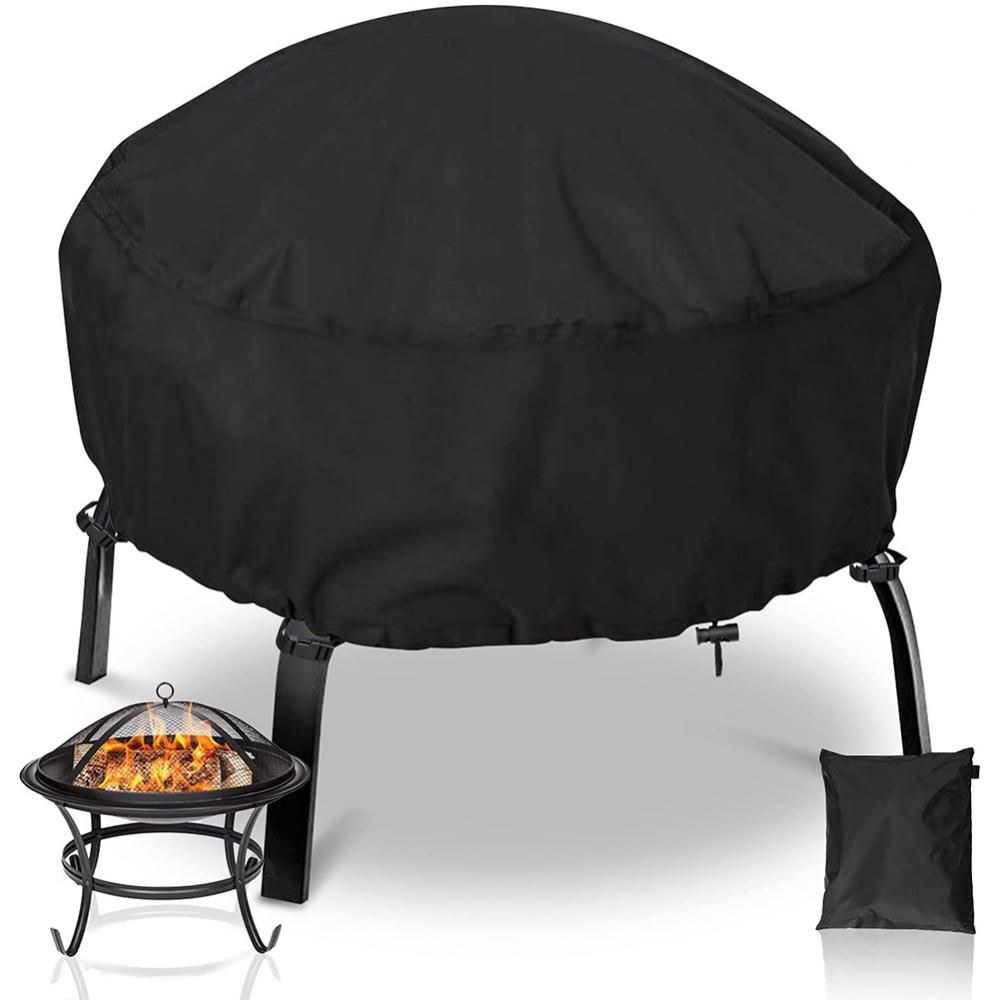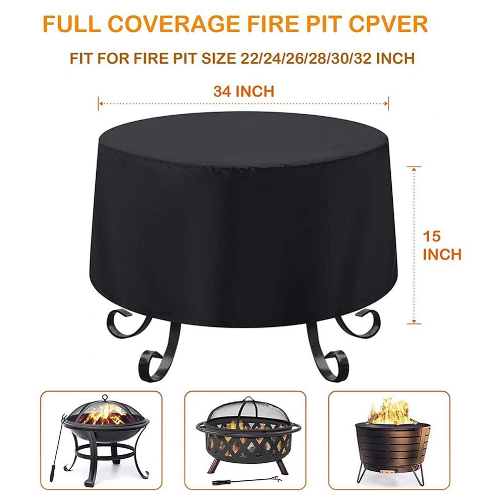 Round Fire Pit Cover Waterproof And Weather Resistant Durable Fabric BBQ Dust Cover For Outdoors Stove Brazier BBQ Acceories