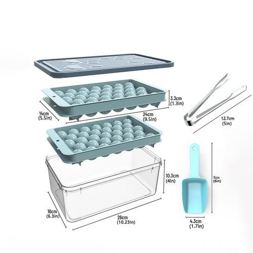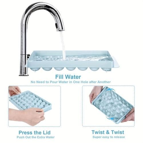 1X Round Ice Cube Tray with Lid & Bin Ice Ball Maker Mold for Freezer with Container Mini Circle Ice Cube Tray Making 66PCS Sphere
