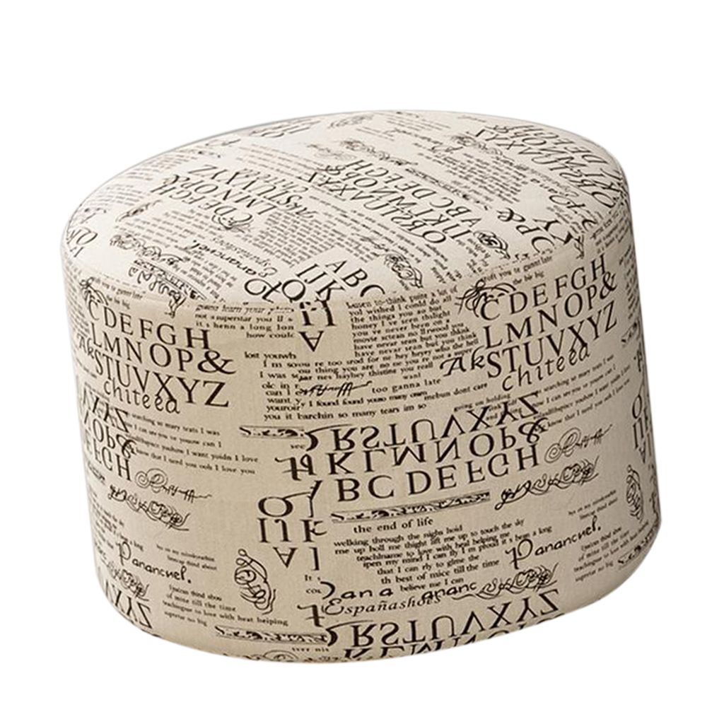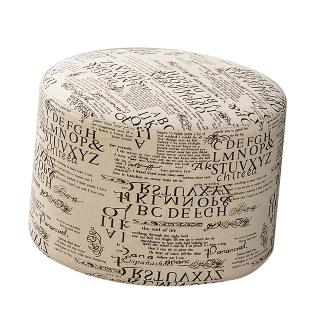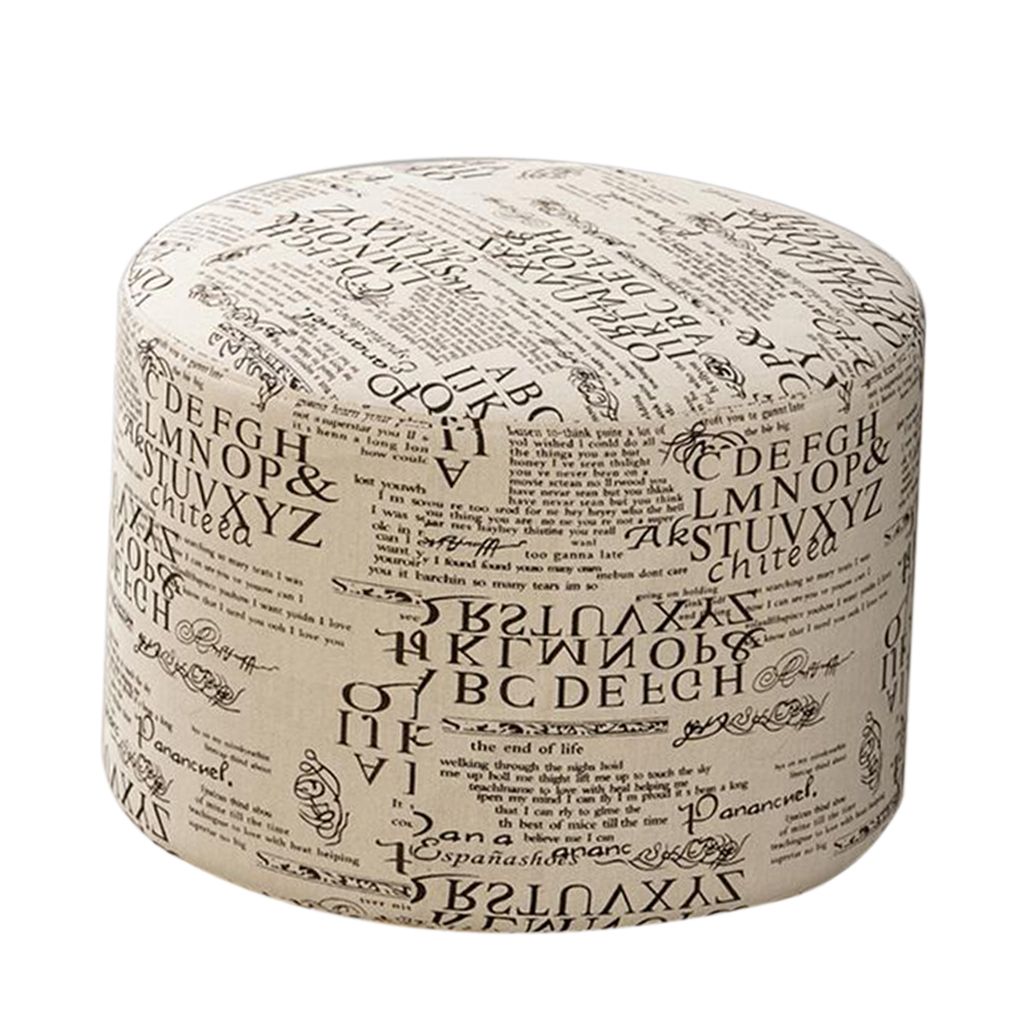 Round Linen Fabric Footstool Cover Wooden Stool Slipcover Word 28x18cm