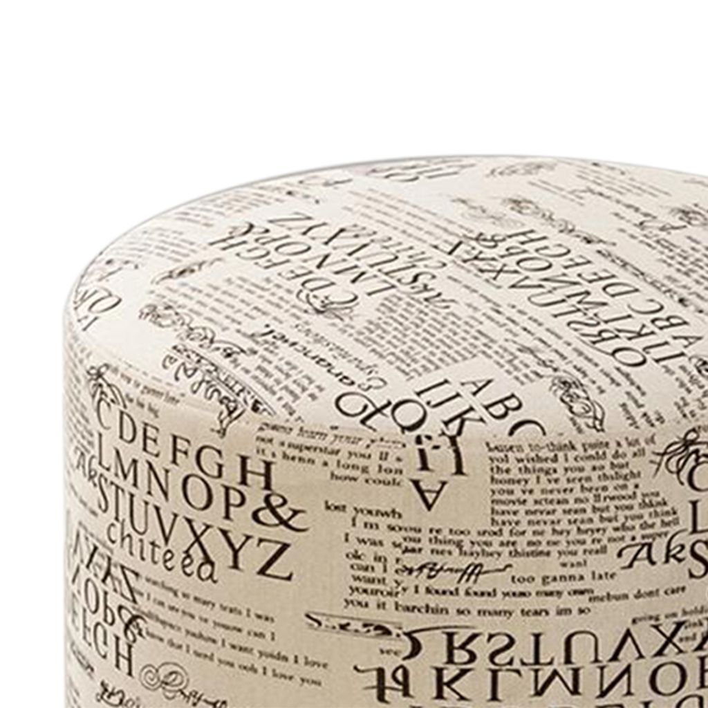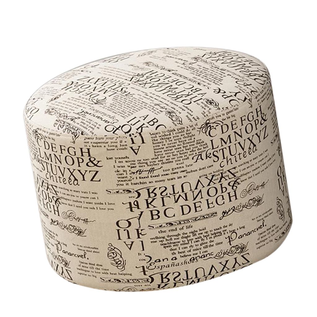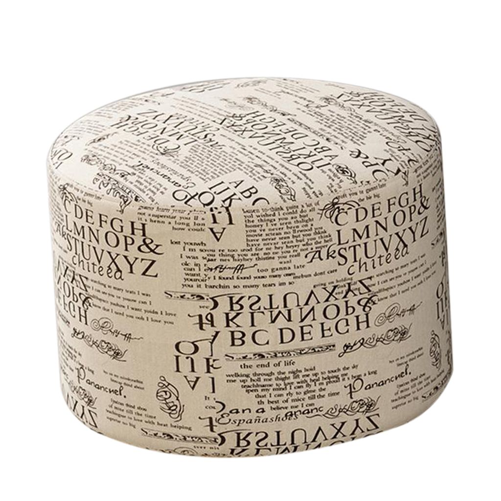 Round Linen Fabric Footstool Cover Wooden Stool Slipcover Word 28x18cm