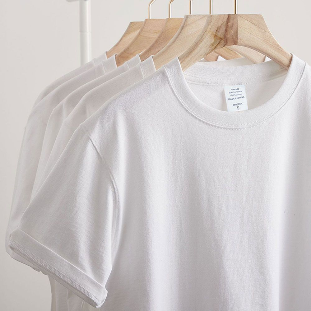 Fabric: Cotton pattern: solid color style: commuting: simple collar type: round neck popular element: printing main color: red white black light blue light hemp gray peach medium hemp gray grass green sleeve type: conventional content: 96% and: short sleeve thickness: conventional length: conventional clothing version: straight tube type