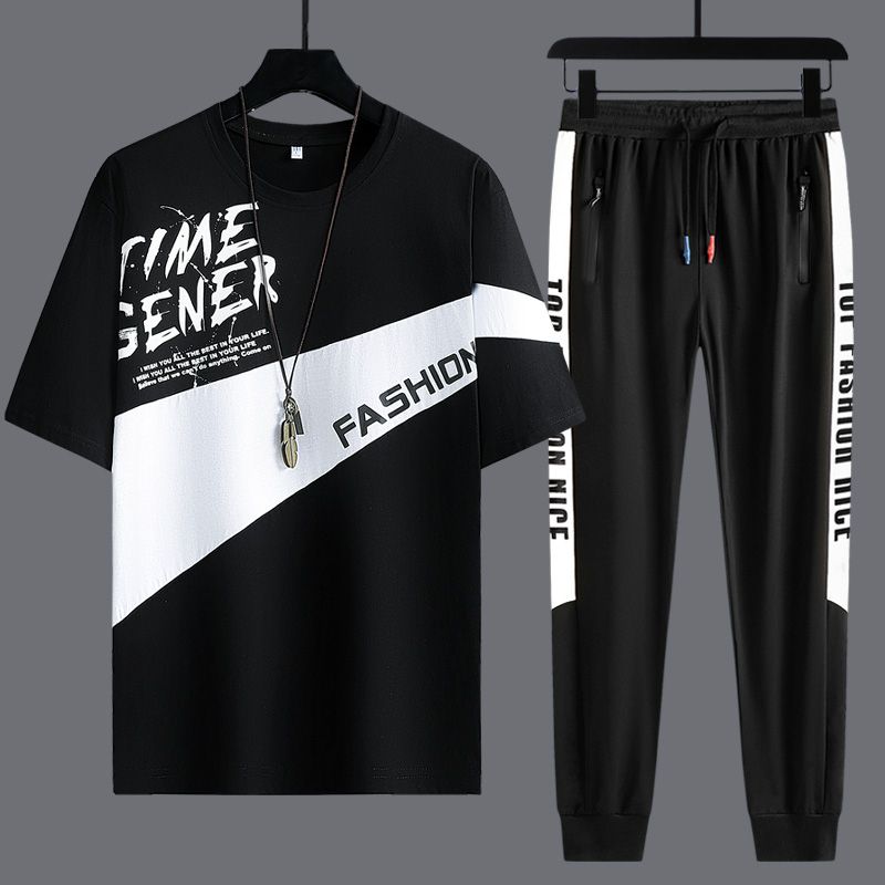 Buy Round Neck Short Sleeve T-shirt Youth Fashion Casual Pants Set in Nigeria
