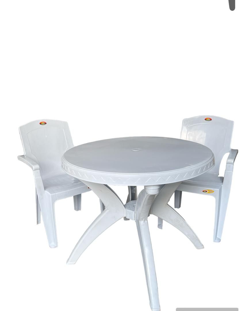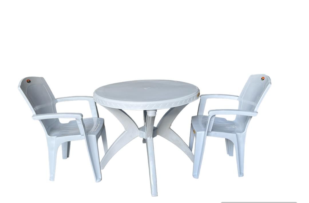 Combo pack of 2 pcs of chair and 1 pcs of table .Strong body and comfortable sitting . made by Virgin plastic materials . long-lasting and durable plastic. clear surface of round table.