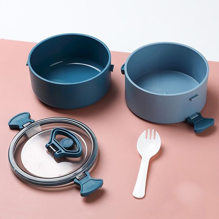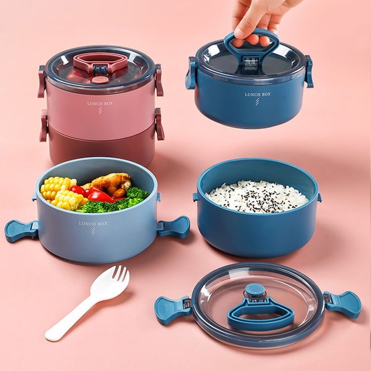 Round Portable Insulation Partitioned Lunch Box Student Office Workers Heated Microwave Oven Bento Box, Style:Double Layer(Red)