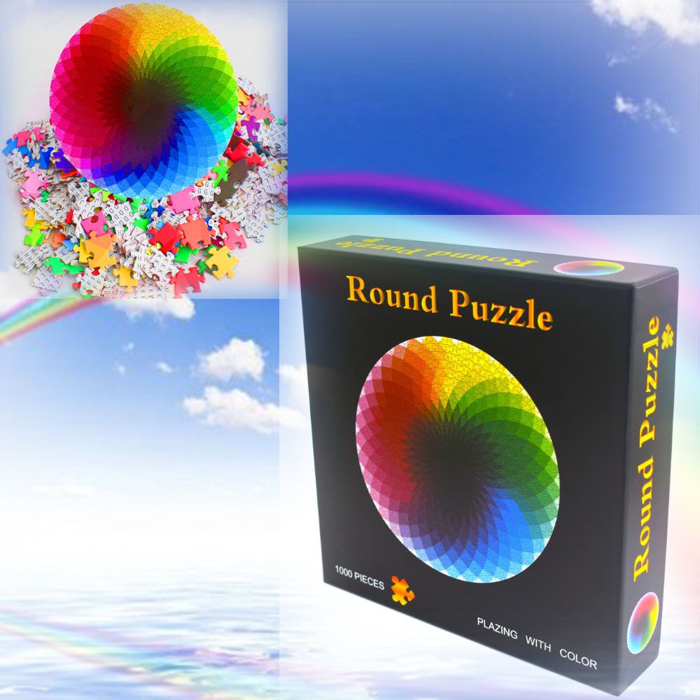 Round Puzzle Youth Adult Jigsaw Puzzle 1000 Pieces Thousand Color Rainbow Paper Puzzle Decompression Toy Jigsaw