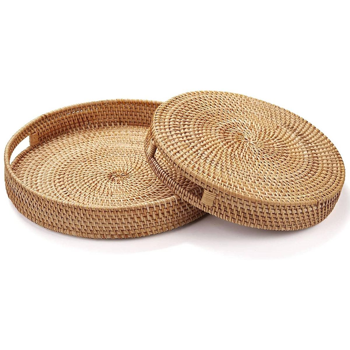 The round tray is designed with natural rustic color, simple but elegant design for decoration, fits most home, kitchen, farmhouse, tea room or coffee room