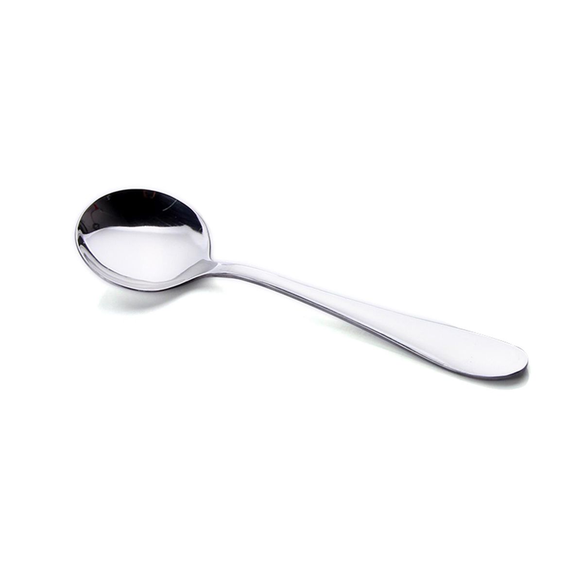 Excellent stainless steel long handle round spoon, rounded edges, safe to use.