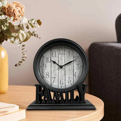 HOME CLOCK DECOR STAND.Also available in BLACK colour..Beautiful decor accessory .Home/Office/Hotel/Lounge decor accent..Material: Metal and Wood.The clock works. It requires 1AA battery (not included)..
