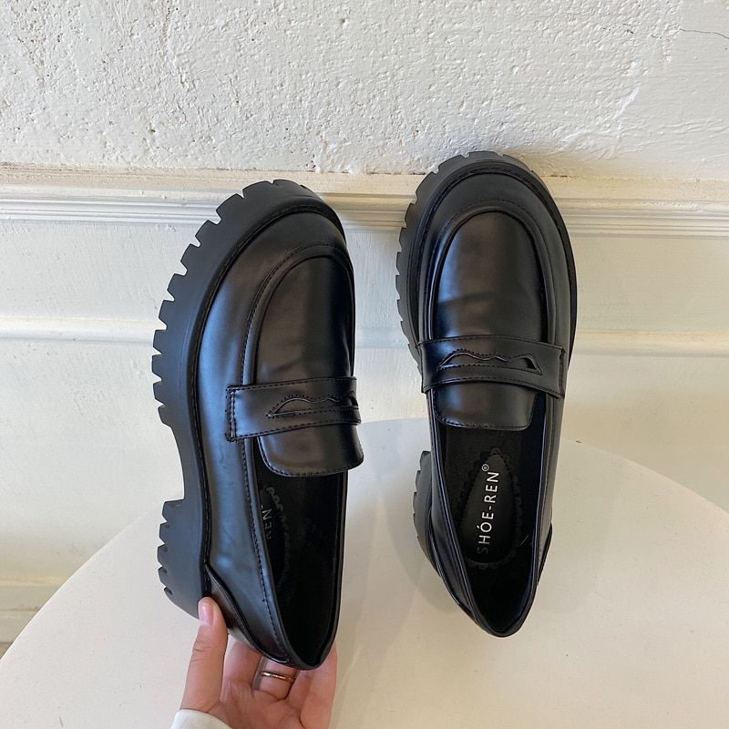 1X FONBERRY Round Toe Street Style Chunky Heel Platform Women Loafers Shoes 2021 Black Punk Goth Y2K Designer Moccasin Women