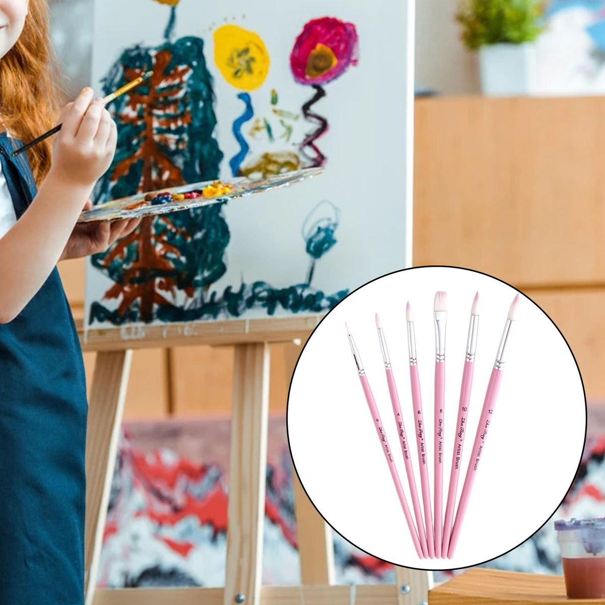 6 Pieces high quality nylon hair wood handle painting brushes for professional artists, kids, beginners or amateur.