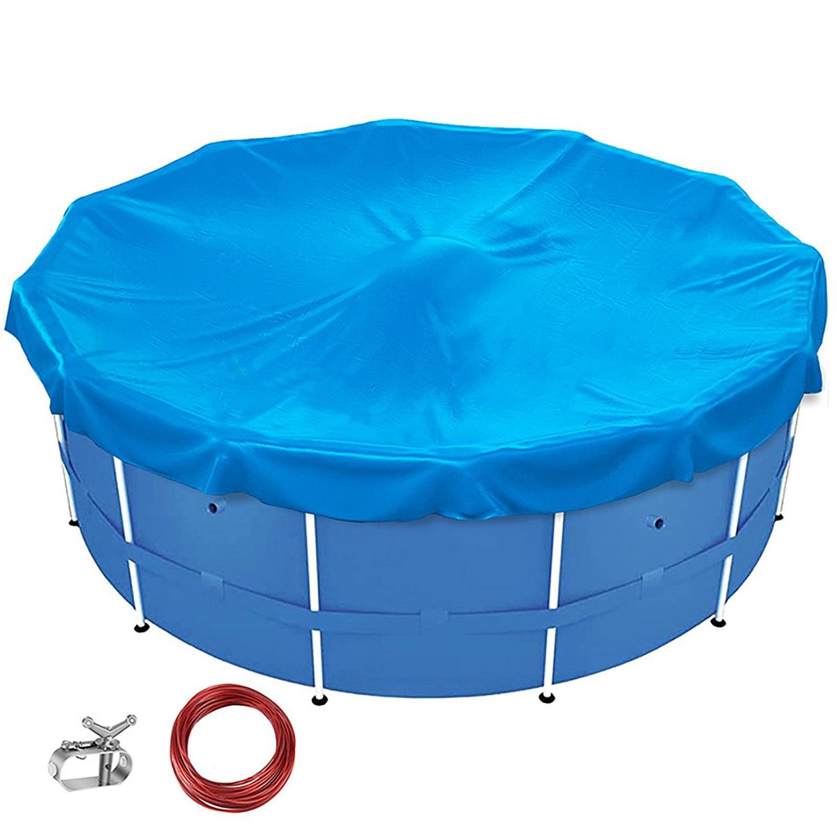Our round pool cover, the ultimate solution for safeguarding your above ground pool and maintaining its clarity throughout the year. our cover is equipped with a robust winch and cable system, ensuring a secure fit that grants you peace of mind. designed to withstand even the most severe weather conditions, our pool covers are built to endure temperatures as low as -10°f -25°c. the fabric is fortified with a uv protection ldpe coating, shielding your pool from harmful sun rays while also preventing water accumulation. versatile in nature, our pool cover is suitable for various outdoor spaces such as homes, gardens, balconies, study rooms, offices, or courtyards. don't let nature take a toll on your pool; invest in our reliable and durable round pool cover today!