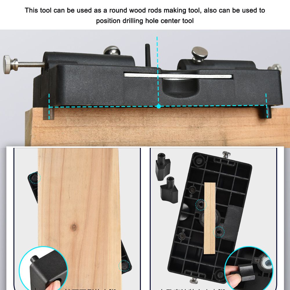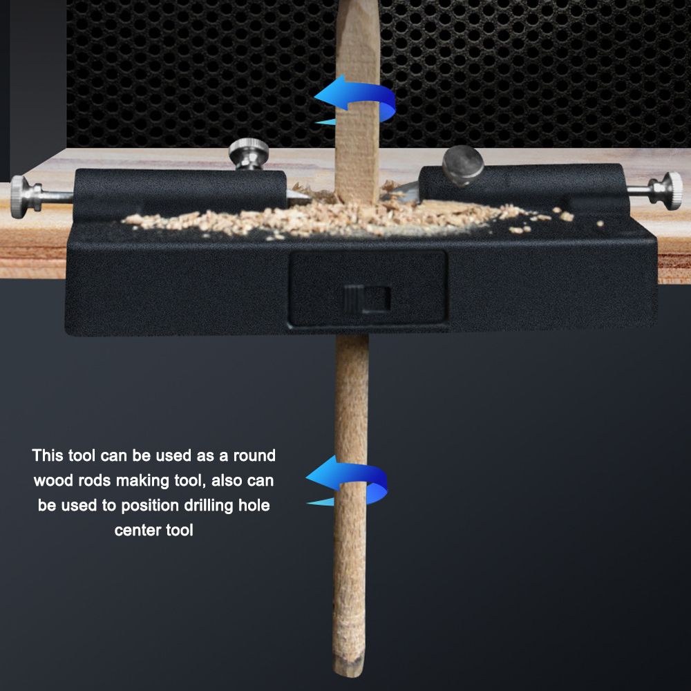 This tool can be used as a round wood rods making tool, also can be used to position drilling hole center tool.