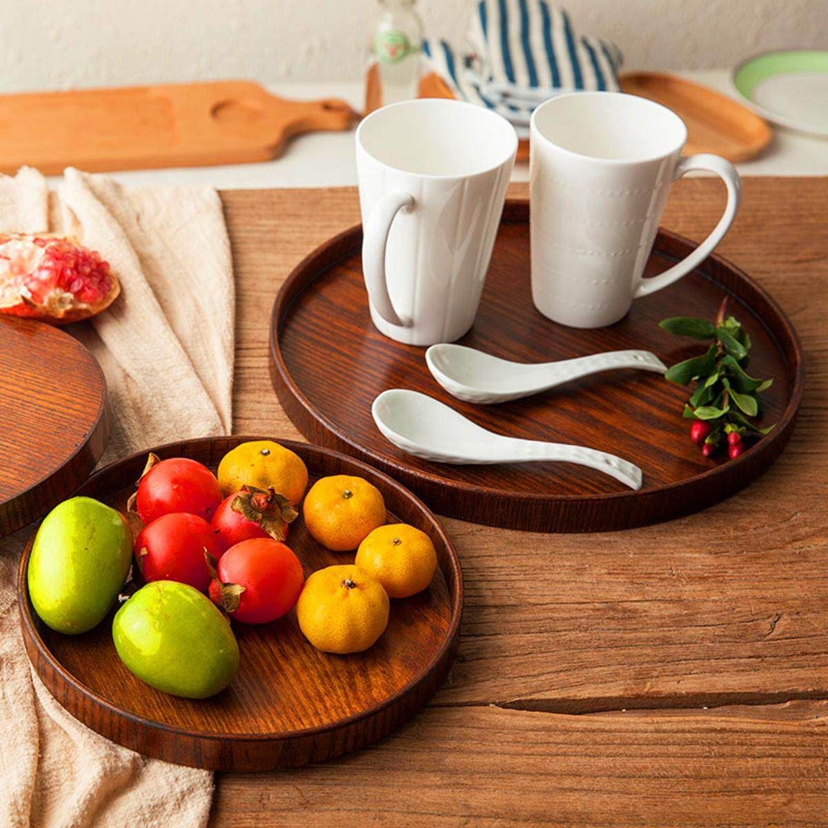 Round Wooden Plate Natural Serving Tray Tea Breakfast Food Server Dishes Platter Description: Condition:100% Type:Wood Serving Tray Material:Wood Size:approx.30*2cm (1cm=10mm=0.39inch) Measurement Details in the attached picture. Features: -Painted by natural plant , which is produced by trees mostly, healthy and safe. -Carefully manual polishing by highly skilled workers, Each one is really work of art. -Classic design and strong material makes it durable. -Perfect smooth surface and makes it one in a million that you can not miss. -Multi-functional, good for holding food, fruits, coffee, tea, etc. Package Included: 1X Wood Serving Tray (Food and accessories are not included) Notice: 1.The real of the item may be slightly different from the pictures on website caused by many factors such as brightness of your and light brightness. 2.Please allow slight deviation for the measurement data. 3.Please allow 1-3cm error. Ifyouhaveanyquestions,pleasecontactus. Wishyouhaveahappyshoppingtime!