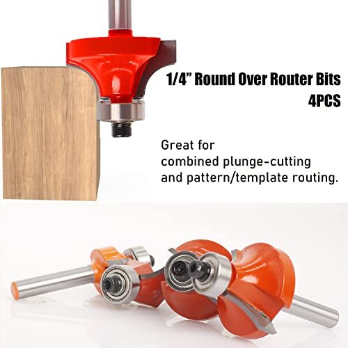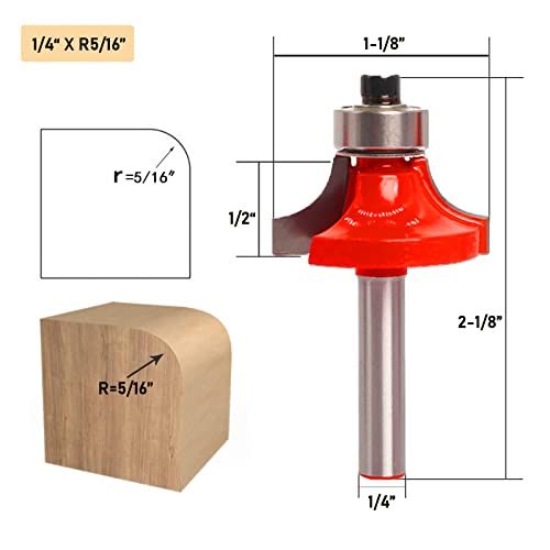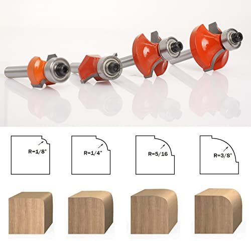 - 4PCS ROUNDOVER ROUTER BIT: The 1/4-Inh shank roundover edging router bit set inludes 4 different woodworking milling utter tools Radius1/8", 3/8" , 1/4" , 5/16".