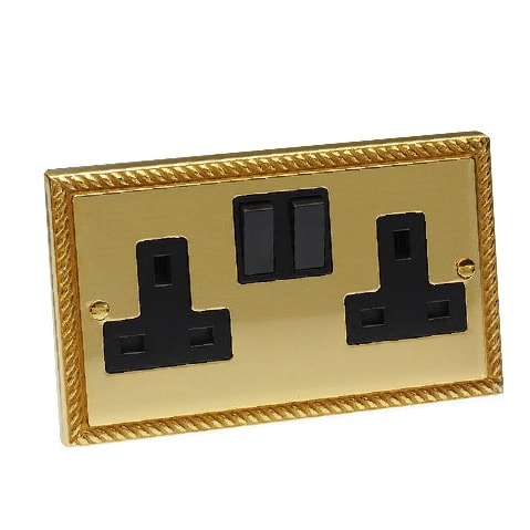 Double Wall UK Plug Socket 2 Gang 13A with 2 USB Charger Port Outlet Plate