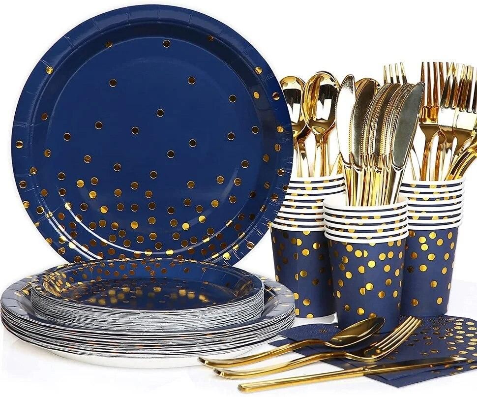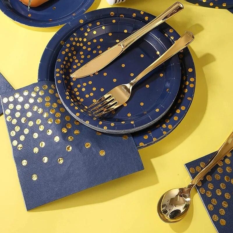 Buy Royal Blue and Gold Plates and Napkins Party Supplies Navy Blue Disposable Paper Plates Tableware Set for Birthday Wedding Party in Nigeria