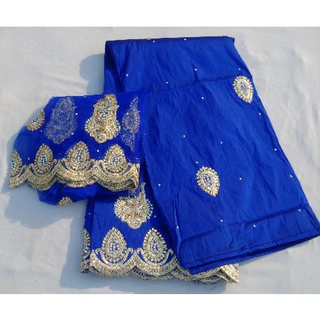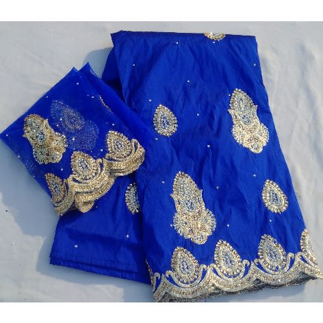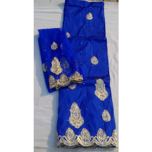 Buy Royal Blue & Gold Indian Lace George With Blouse - 7 Yards in Nigeria