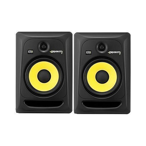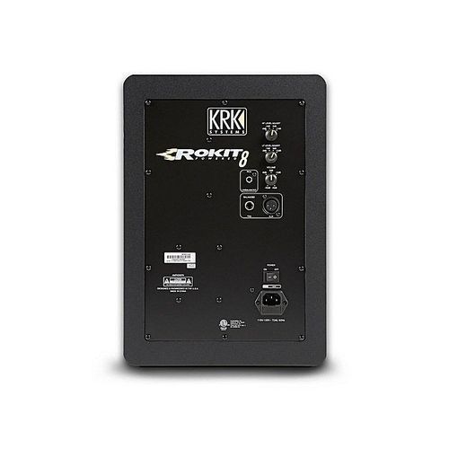 A wide frequency range, ultra-low distortion at any level and supreme reference audio separates the KRK Rokit 8 Powered Studio Monitor from all the others. This remarkable monitor in KRK's Rokit series packs 100-watts of clean bi-amped power through an 8-inch composite woofer and 1-inch soft-dome tweeter for unparalleled tight bass, clear midst and pristine highs. The Rokit 8 also features low and high frequency adjustment for optimal room acoustics and mix translation. Proprietary waveguide technology optimized for superior stereo imaging makes this perfect for studios of all sizes. KRK also gives the Rokit 8 XLR, 1/4-inch and RCA inputs for universal connectivity in any studio environment. Designed to compete with active reference speakers costing much more, the Rokit 8 yields unprecedented audio clarity that will help you get the perfect mix! KRK's ROKIT 8 powered studio monitors offer professional performance and accuracy for recording, mixing, mastering and playback. The system consists of a 1" soft dome tweeter and composite woofer. It delivers high frequencies up to 35kHz, vocal clarity and extended bass response. The proprietary bi-amped, class A/B amplifier grants SPL up to 109dB. The ROKIT wave guide is designed to ensure detailed imaging in the listening position. The front-firing bass port reduces boundary coupling to allow flexible positioning in the room while the engineered surface reduces diffraction distortion. Multiple input connections ensure the ROKIT 8 will easily integrate in any system configuration. For large Recording rooms and high SPL Monitor needs, the KRK ROKIT 8 will deliver any detail of performance through its large headroom.