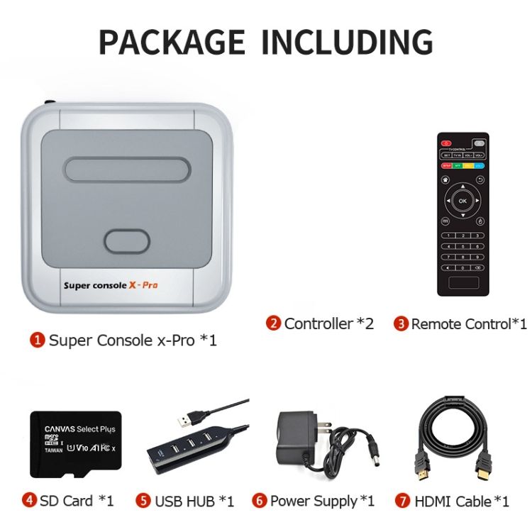 RS-100 4K Arcade Game Box 256G + 2 x SNES Handles, UK Plug