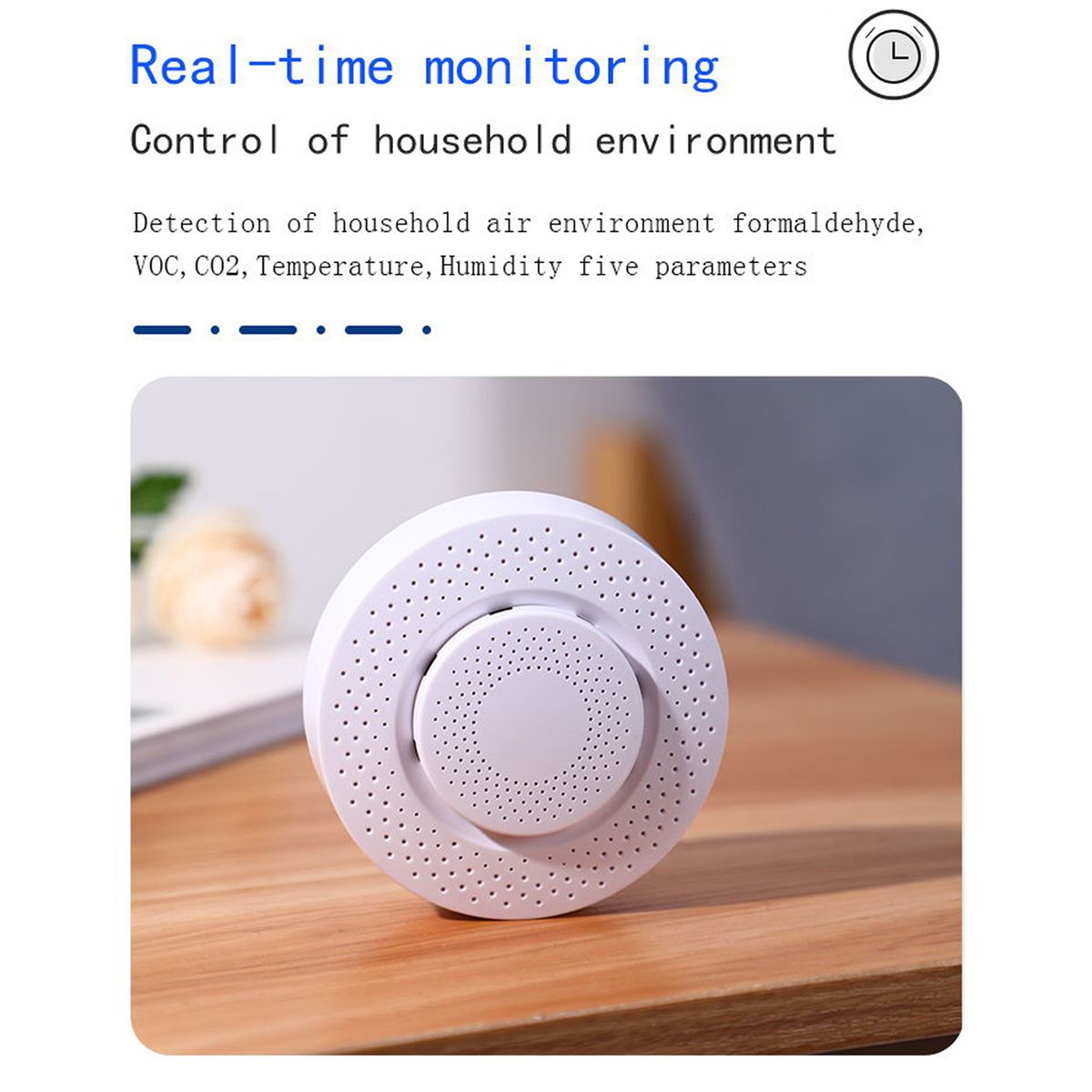 [Real-Time Monitoring] Monitor five environment data including formaldehyde, VOC, CO2, temperature and humidity in real time, which can be checked clearly through the Tuya APP.