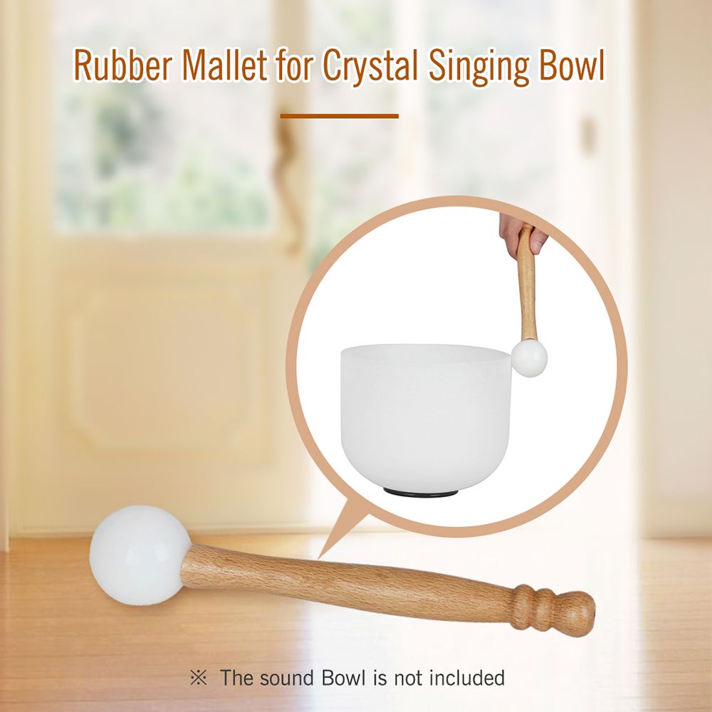 One method is that holding one end of the rubber mallet and slightly knock the rim of the crystal singing bowl, you will heard a pleasant sound; By another way, firstly giving a slight knock on the singing bowl, before the last sound goes away you rub the rim to make a pleasing sound. The tone quality of the crystal singing bowl isn\'t always the same every time being knocked, so you can adjust the speed of friction or the inclination of the rubber mallet to achieve the satisfying effect.