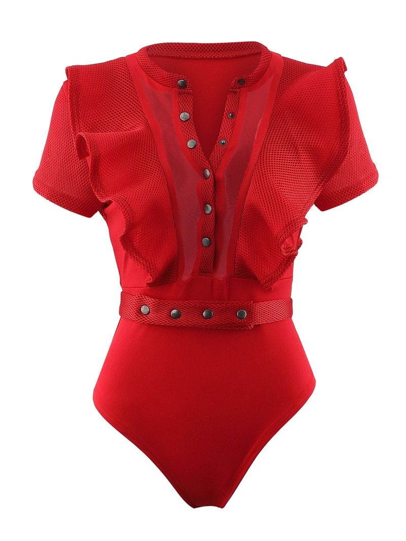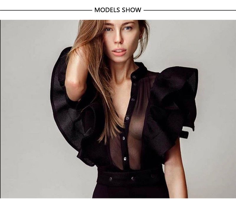 1X Ruffle Buttons Sheer Mesh Bodysuit