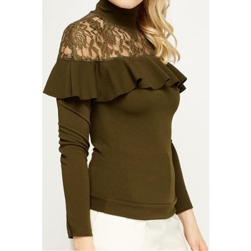 Buy Ruffle Lace Insert Olive Top in Nigeria