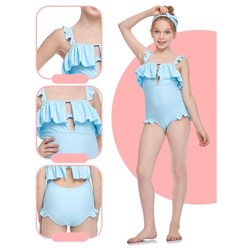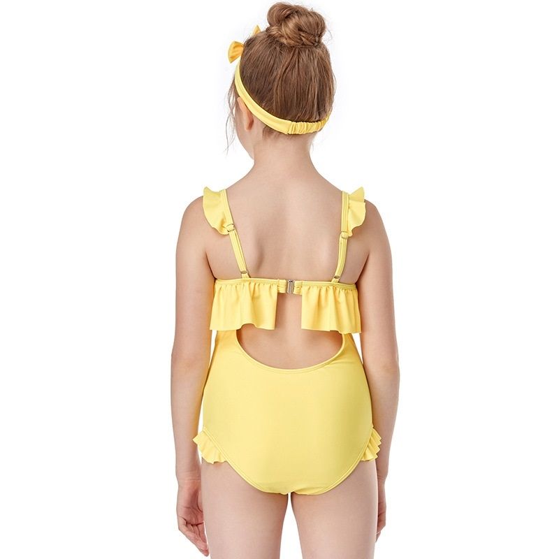 Solid Color Ruffled Sling Baby Girls One-piece Swimsuit (Color:Yellow Size:116)