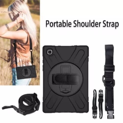 Strike Rugged Case with Hand Strap and Lanyard for Samsung Galaxy Tab A9 offers dual-layer protection to guard your device against dust, dirt, shocks, scratches, and dents. It features a handy built-in kickstand for convenient horizontal or vertical viewing, a secure hand strap for easy gripping, and a detachable shoulder strap with a soft pad to rest comfortably on your shoulder. Enjoy the freedom of carrying your device hassle-free wherever you go with the Samsung Tab A9 protective case