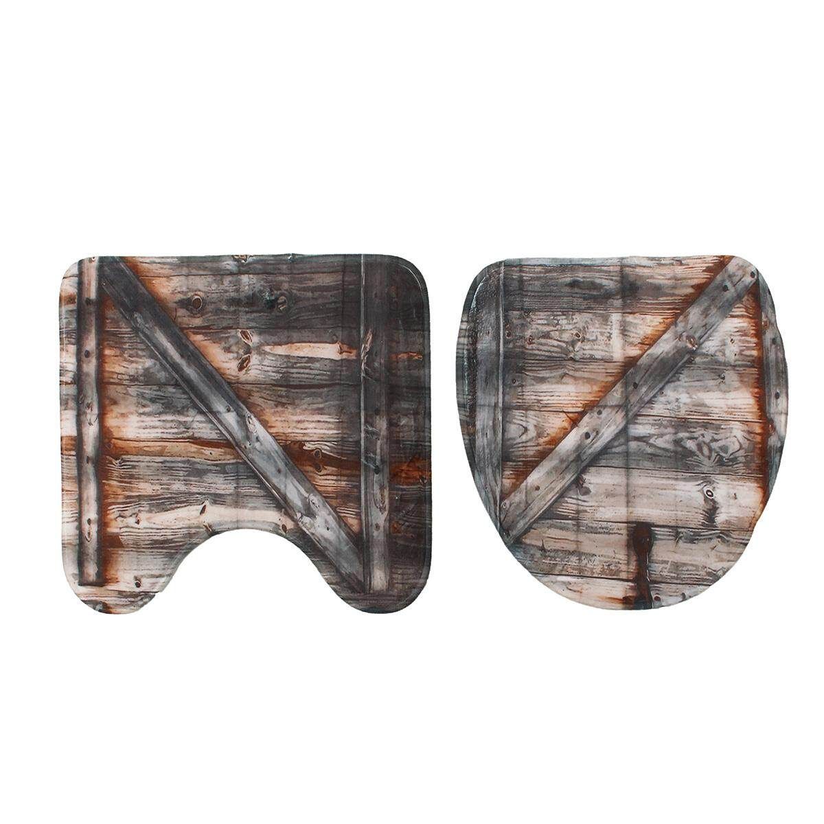 1 set Rustic wooden Barn Door Toilet Seat Cover Toilet mat