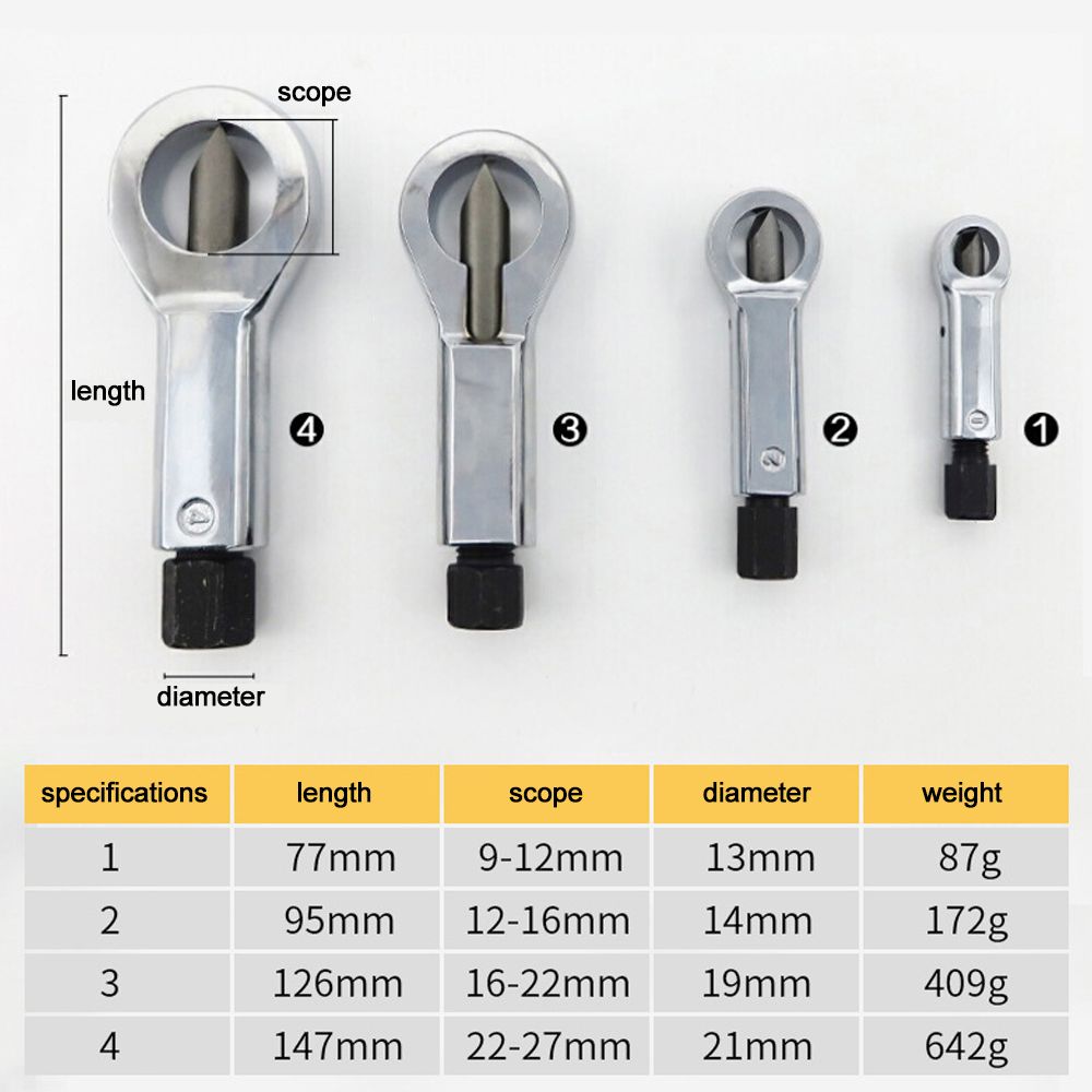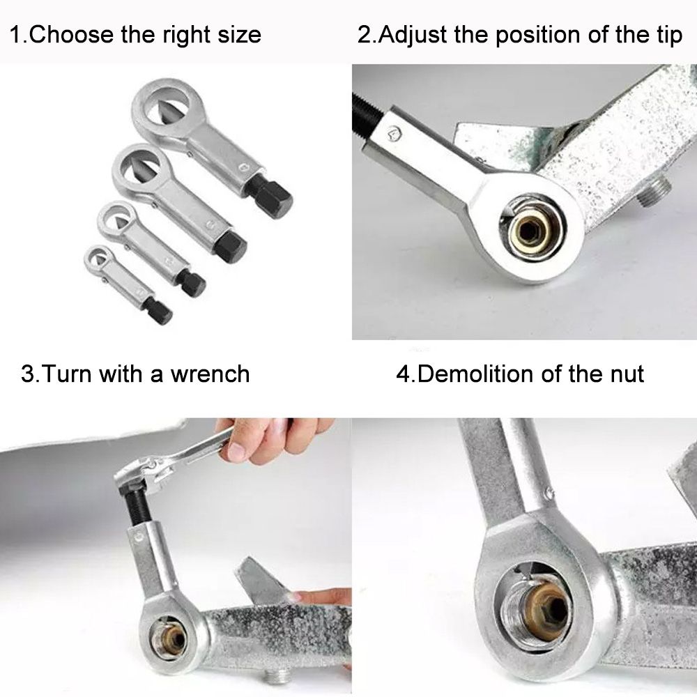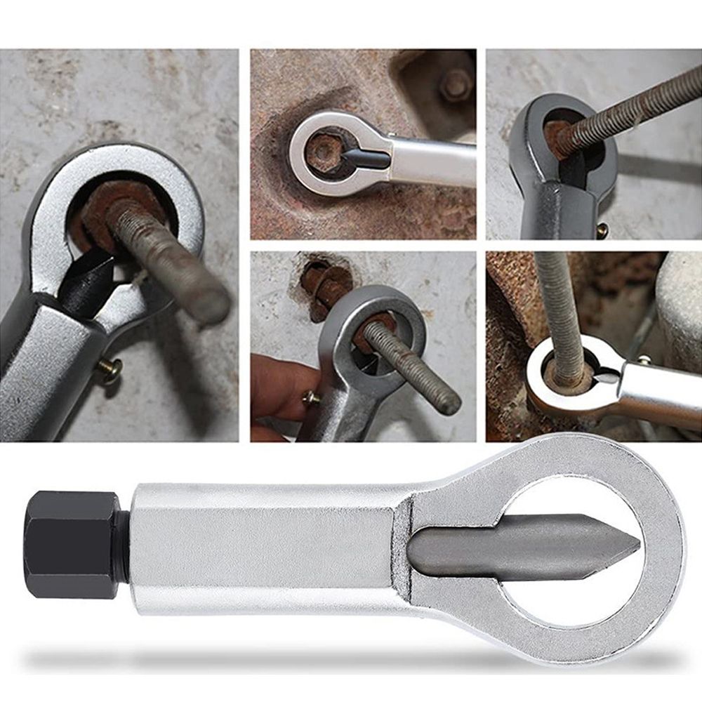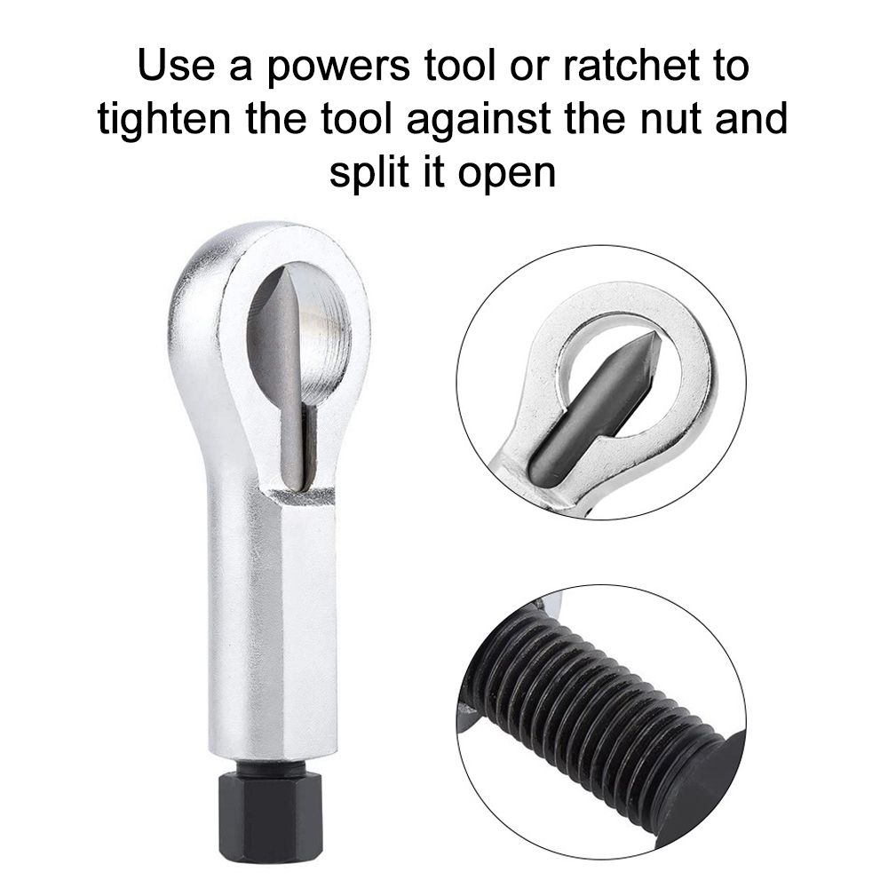 Use a powers tool or ratchet to tighten the tool against the nut and split it open
