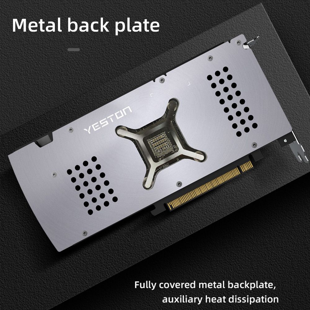 The full-covered metal backplate fully protects back components to make graphics card stronger and more durable. Multiple cooling hole design, further auxiliary heat dissipation.