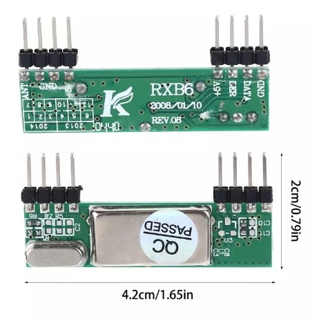 RXB6 433Mhz Superheterodyne Wireless Receiver + AK-FST Transmitting Superheterodyne Module is a wireless transmitter and receiver that has good selectivity and spurious radiation suppression with CE/Fcc International Certification.
