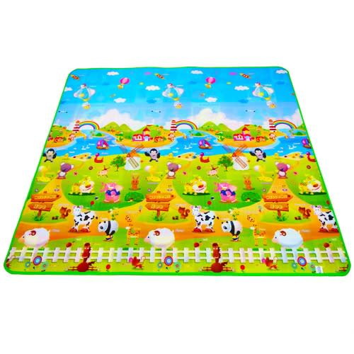 This playmat will educate your little one while at play. Soft, elastic, and slip-resistant, patented cushioning and embossing protect kids from hard impacts on the ground;Manufactured with absolute earth and baby-friendly material. 100% free from any toxic materials including phthalate.Completely waterproof, easy to clean and sanitize from your child's rugged playtime. Help keep kids healthy from germs, bugs, and bacteria.Vividly coated on both sides with designs to help sensory development. Flipping it creates a new playtime environment.It helps absorb noise and lets your child play without the worry from chilly floors.