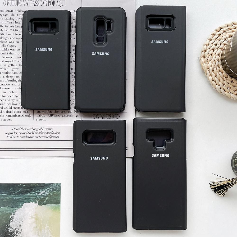 S10 Plus Mirror Clear View Smart Flip Case Original Samsung Galaxy S8 S9 Plus Note 9 8 S8 S9 S10 Black Leather Phone Covers