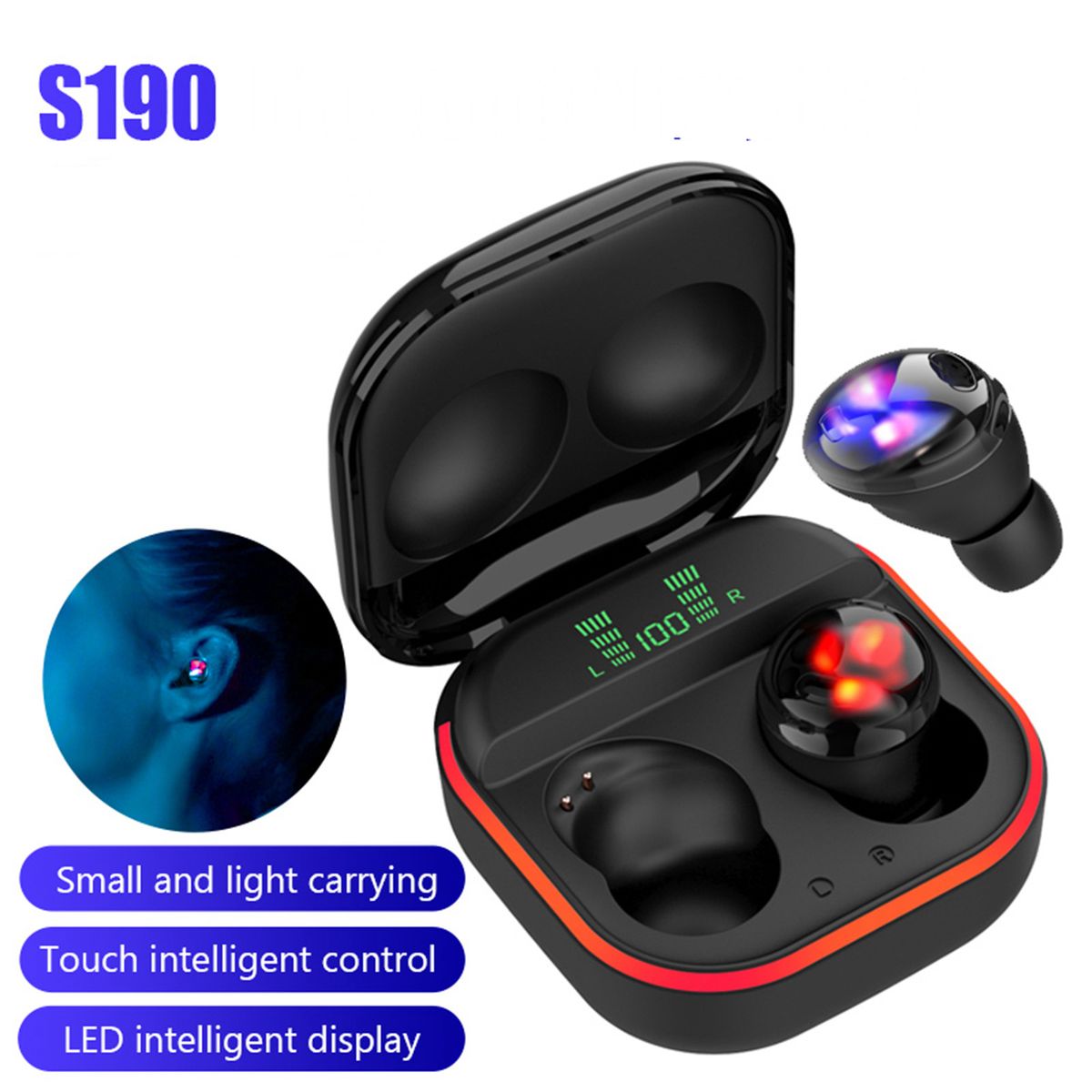 [LED-Digital Display amp; Comfortable Wear] LED-digital screen with indicator lights show clearly the battery charging status and battery power consumption.With ergonomic design,the earphones fit well the ear canal and reduce ears pressure,ensuring in-ear wear comfort.