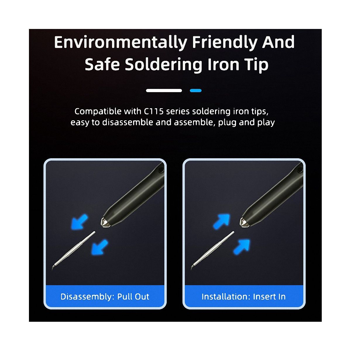 Detailed Information About The Product:features: 1,Compatible with C115 series soldering iron tips, temperature adjustable range 50℃-500℃/122℉-932℉.