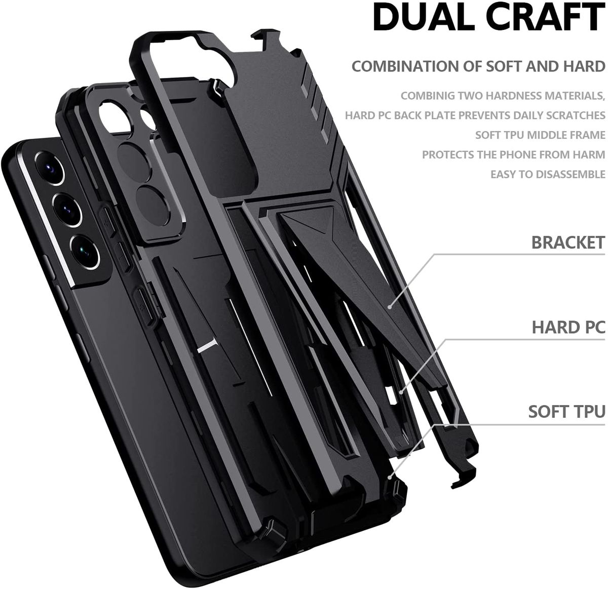 - QRemix Designed for Samsung S22 5G Case with Stand Dual Layer Military Grade Drop Protection Armor Bracket Protective Phone Case for Samsung Galaxy S22 5G 6.1 Inch with Two Angles Kickstand (Black)