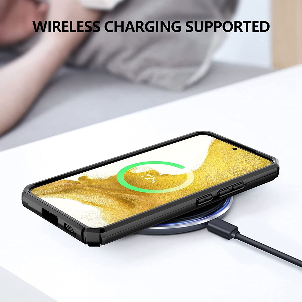 TPU and plastic hybrid case with reinforced corners absorb shocks to protect your S22 5G when accidental falls