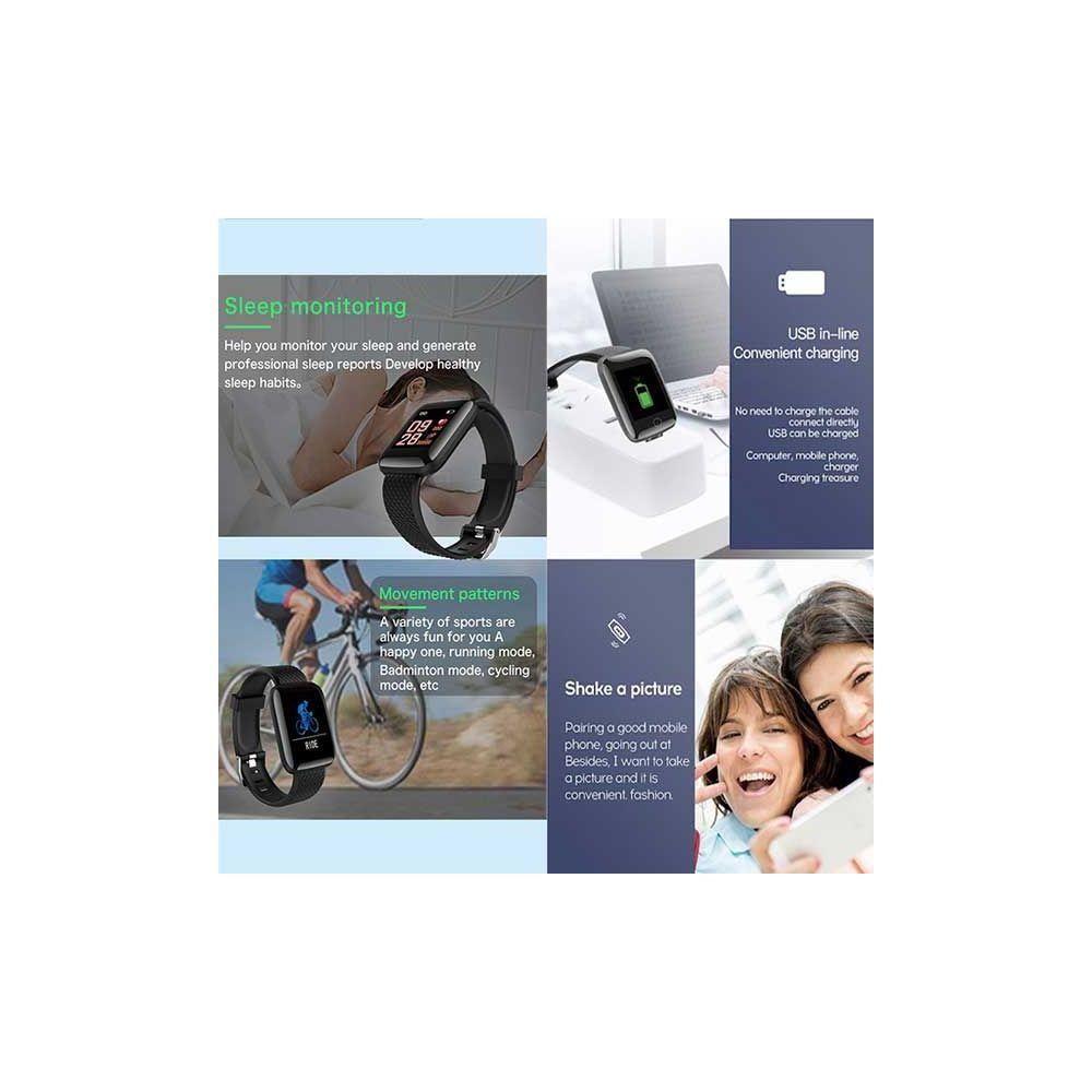 - smart call reminder, Bluetooth camera, steps, calories, sleep monitoring Bluetooth music, heart rate quickly view various functions,