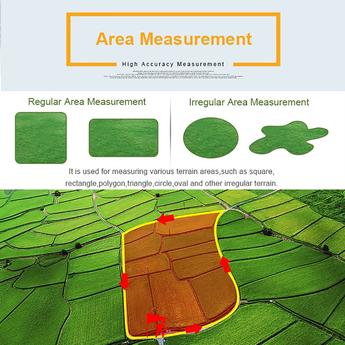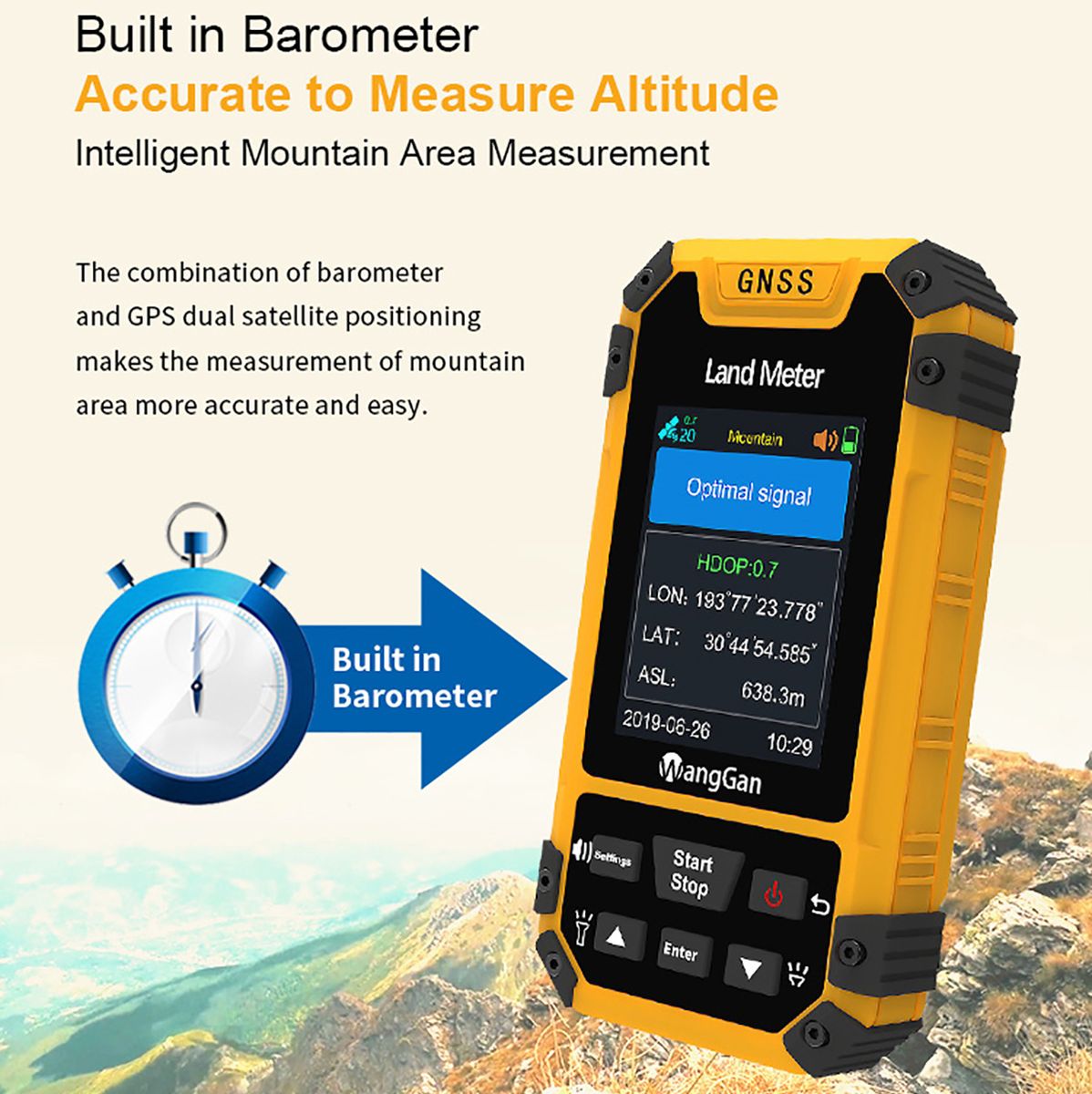 Description Quick Details Brand Name:WangGan Application:Land Surveying Color:Black + Yellow Battery:Lithium Battery+AAA battery Function:Multi-function Warranty:12 Months Dimension:117mm*61mm*22mm Weight:120g(No battery) Satellite signals:GPS GNSS SBAS BeiDou Working temperature:-20°C~65°C Storage temperature:-40°C~75°C Feature: High sensitivity GNSS receiver chip. Automatic farmland area & length measurement. Easy to operate,easy to export data. Able to set unit-price,total working price display after measurement. Fallproof,waterproof and dustproof. HD color display Package list: 1*S4 GPS land meter