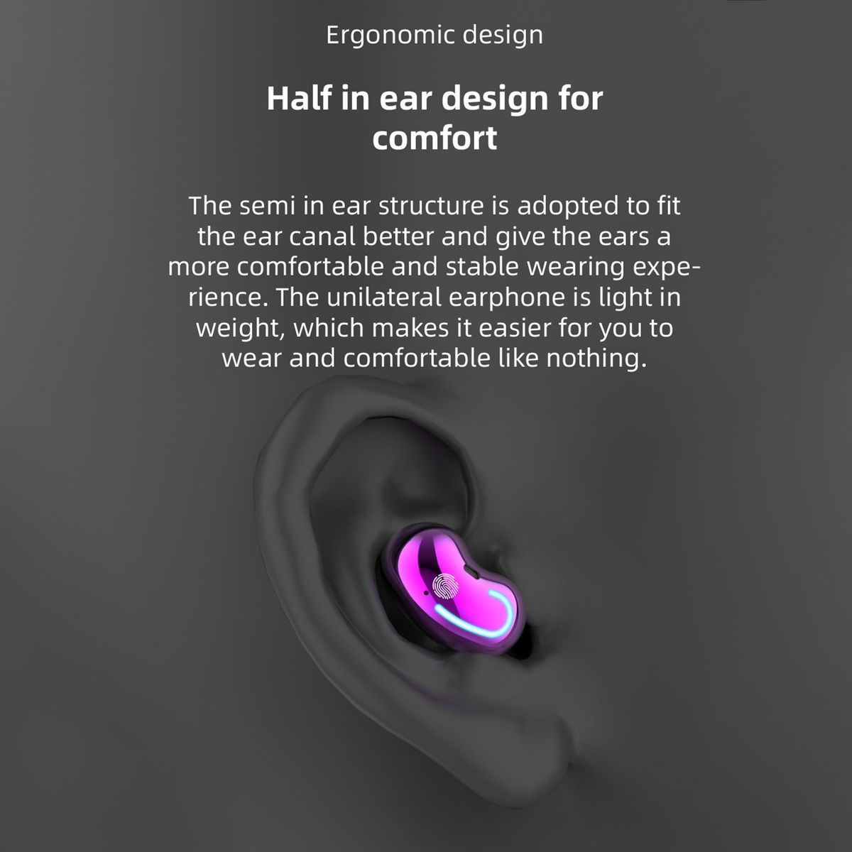 Half-in-ear design, fit the ear canal better and give ears more comfortable and stable wearing experience.