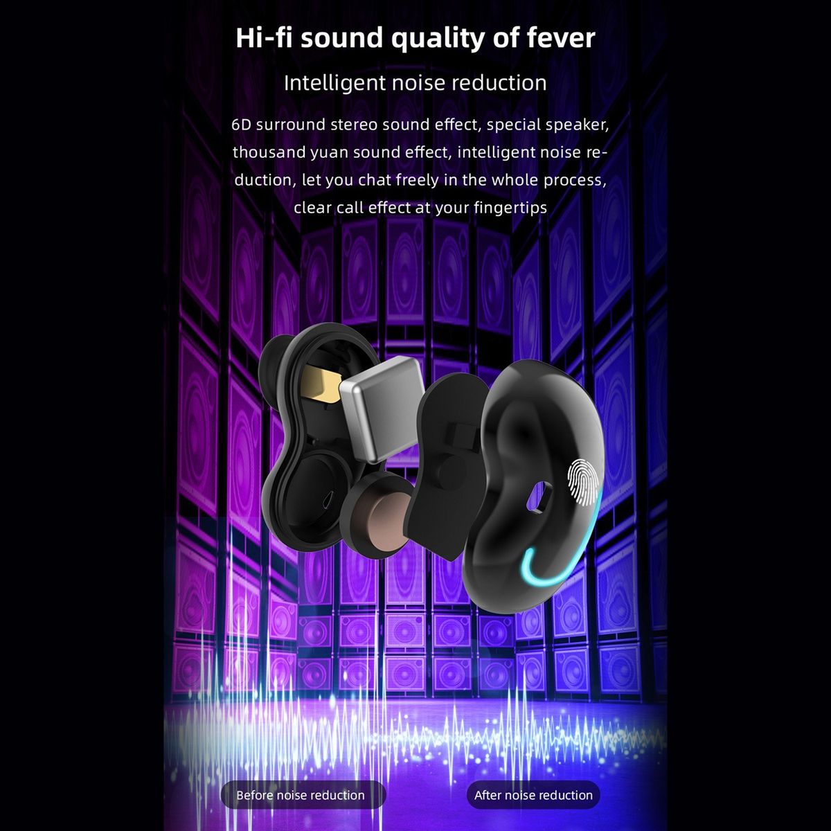 Intelligent noise reduction, 6D surround stereo sound effect, clear call effect.